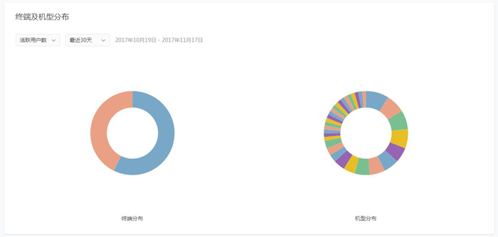 以上是近30天終端及機(jī)型分部圖,得知iPhone終端占比略少于Android終端。機(jī)型包含市場(chǎng)流行的多種機(jī)型,如蘋果、華為、小米、OPPO、vivo等不同型號(hào)機(jī)型數(shù)據(jù)占比。訪問(wèn)集體婚禮網(wǎng)小程序的人群多樣化、手機(jī)款式也是多樣化啊!