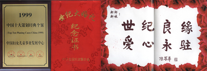 1999年中國集體婚禮北京總部組織舉辦世紀大婚禮,陳慕華題詞