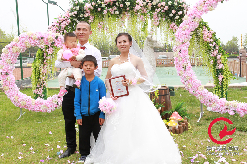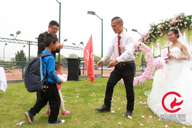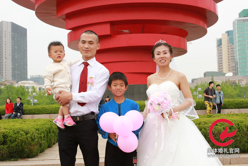 青島集體婚禮新觀察,新人帶著兩個孩子參加集體婚禮已成常態