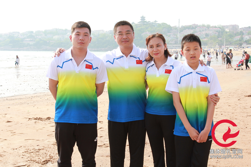 青島集體婚禮一家四口全家福照片
