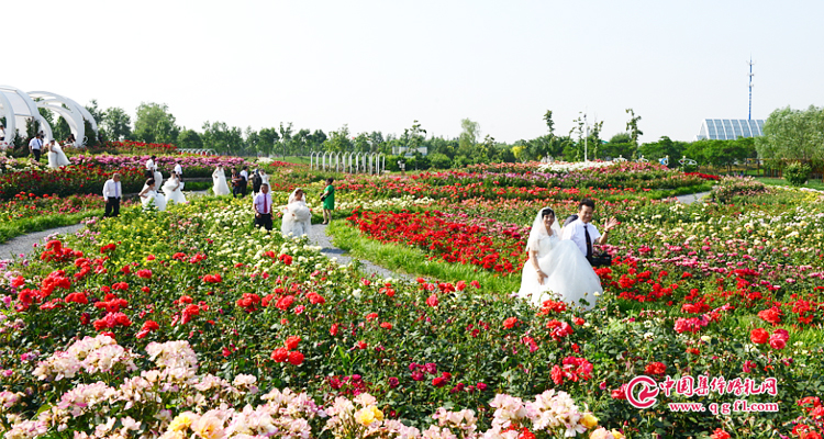 2018年6月16日,由中國集體婚禮網北京總部舉辦的第22屆北京草坪集體婚禮。來自全國不同地區的新婚新人匯聚到位于北京的愛情海玫瑰花園,穿越花的海洋,步入神圣的婚禮殿堂。