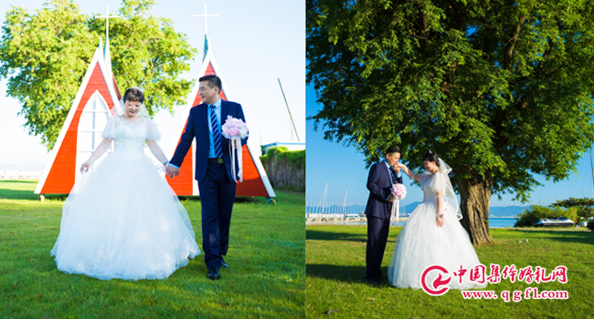 個人穿婚紗在綠色草坪上拍照是非常美的,可以擺拍,可以做自己喜歡的造型,表示新人的恩愛,新人的喜悅,新人的浪漫。