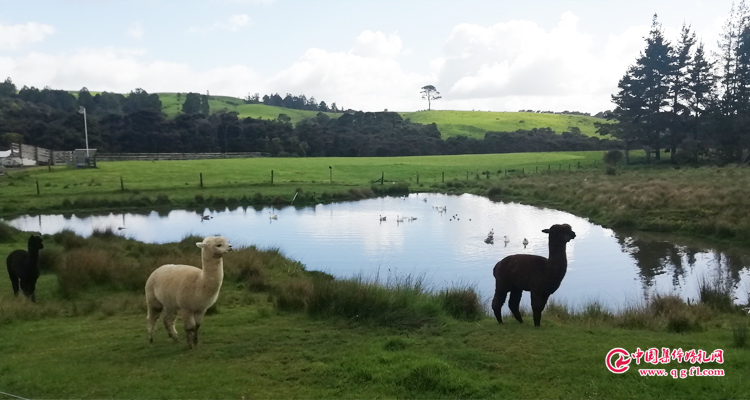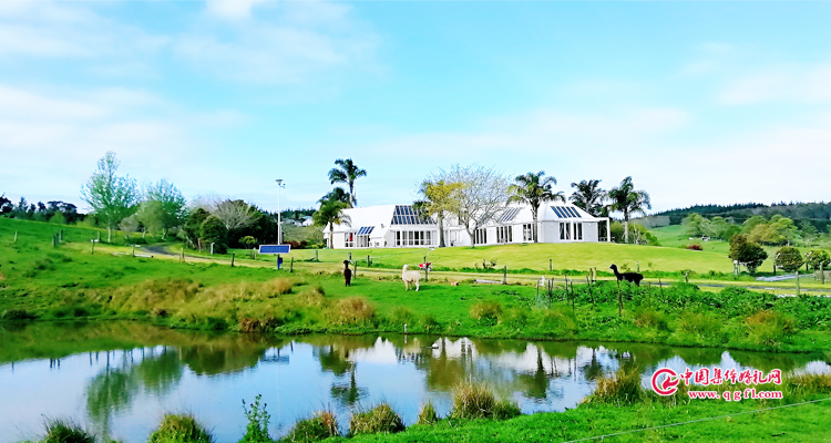 新西蘭南島私人莊園內,周圍是廣闊的草坪,草坪上有牛羊奔跑。