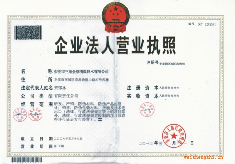 | 發證機構: | 東莞市工商行政管理局 | 發證時間 : | 2008-05-13 |