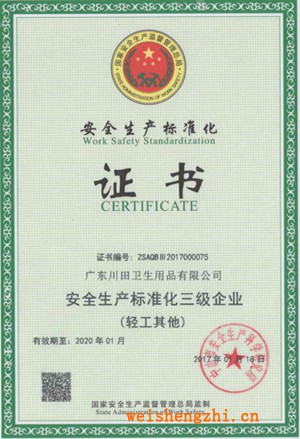 » 安全生產標準化三級證書