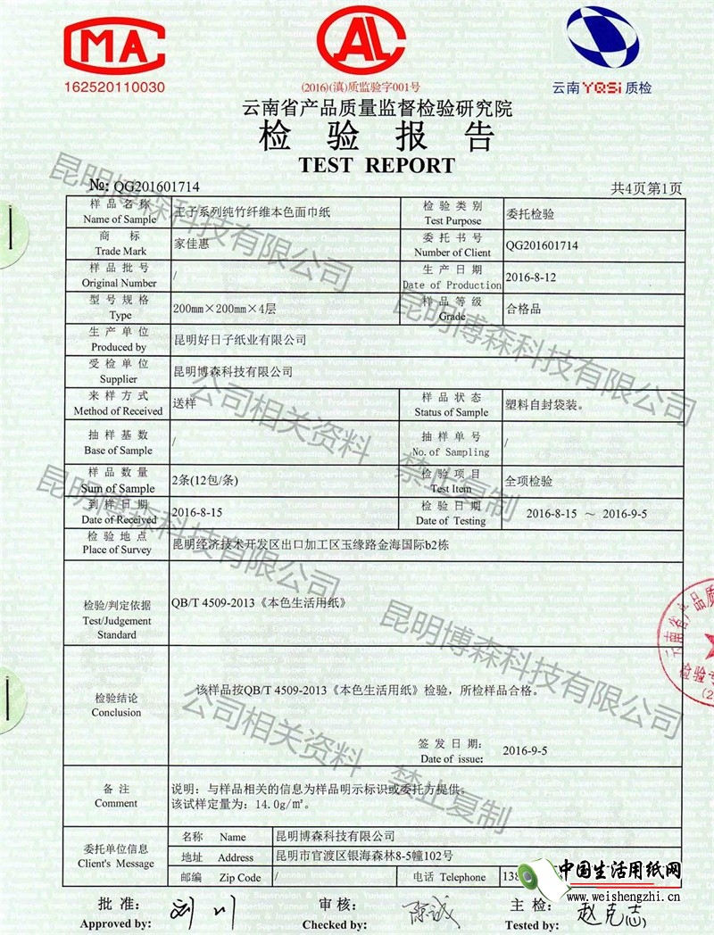 證書介紹 王子純竹纖維本色生活手帕紙質(zhì)檢報(bào)告,按照標(biāo)準(zhǔn)項(xiàng)目,所有指標(biāo)全檢,并全部合格!