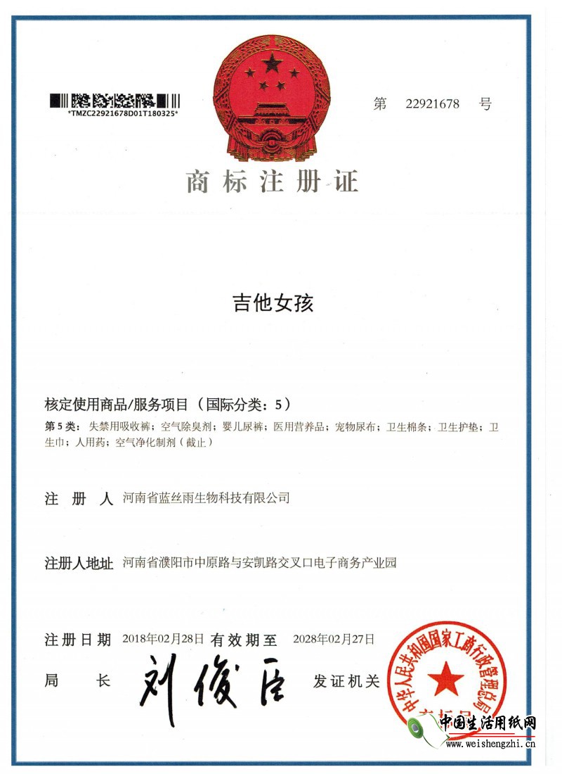 榮譽(yù)資質(zhì) 吉他女孩商標(biāo)證書(shū)