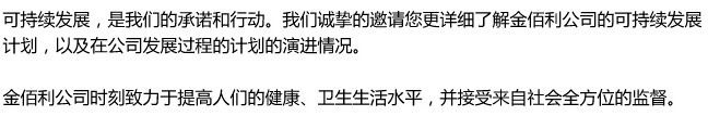 可持續(xù)發(fā)展是全世界面臨的新發(fā)展課題,特別是對于正經(jīng)歷高速經(jīng)濟騰飛的中國,將可持續(xù)發(fā)展與經(jīng)濟發(fā)展、人民日益增長的物質(zhì)文化需要相結(jié)合是我們維持長久、健康、快速業(yè)務(wù)增長的關(guān)鍵環(huán)節(jié)。在不斷引進金佰利旗下一流高質(zhì)量產(chǎn)品,對中國寶寶、女性、老人和中國家庭提供世界級關(guān)愛的同時,我們珍惜自然資源、保護生活環(huán)境、服務(wù)周圍社區(qū)、關(guān)注人才發(fā)展,積極推動可持續(xù)發(fā)展的方方面面。