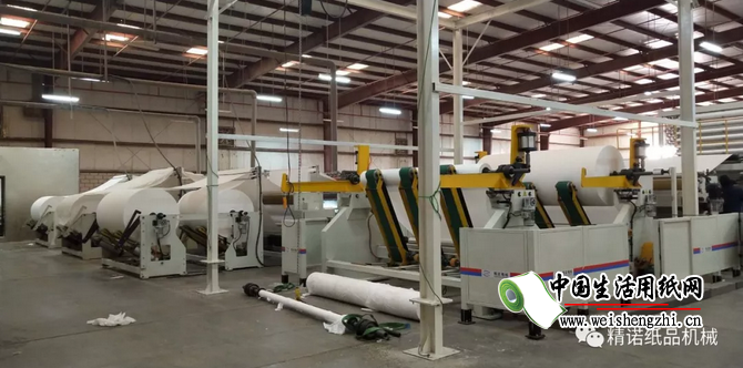 其實這位客戶是精諾機械的老客戶,在此之前也買了精諾機械十排抽紙機生產線: