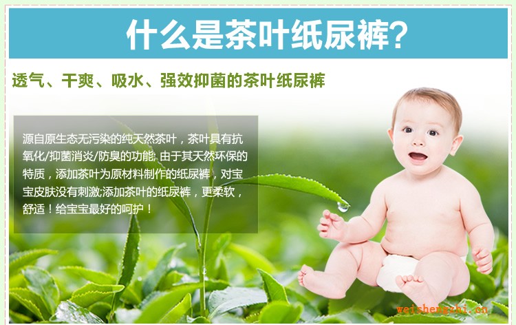 健康型茶葉紙尿褲的大特點(diǎn):消炎殺菌,專治紅屁屁及過敏,告別尿臭味