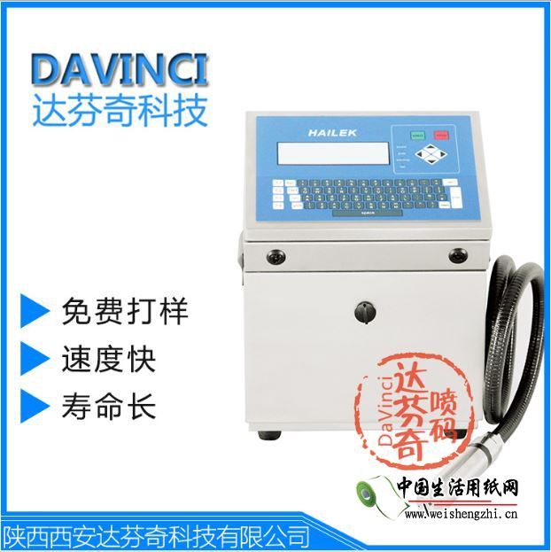 達芬奇紙巾噴碼機黑墨機具有性能穩定、運行成本經濟、噴印效果清晰等特征,適用于在微小產品上標識,廣泛應用于電線電纜、電子、照明電器和食品等行業。獨特的循環攪拌功能,使得顏料墨始終保持均勻穩定狀態,噴嘴不易堵塞。專利噴嘴自動密封技術徹底避免噴嘴因在空氣中暴露而使粉塵和雜質依附其上造成的墨線歪斜,有效預防噴嘴堵塞問題。堅固的IP55不銹鋼箱體設計,抗塵、抗潮,可安裝于任何生產環境;自帶正氣壓裝置,始終保持噴頭內干凈干燥。標配正氣壓裝置,機器能在多塵、潮濕環境中正常工作。