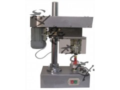 該機為臺式三只旋風刀式軋蓋機,臺面用不銹鋼板制成,整潔耐腐蝕易清掃,軋蓋刀頭系用優質鋼材加工而成,表面誶火處理,經久耐用。工作時,被軋蓋瓶不轉,均布 120°三只旋風刀旋轉軋蓋封口,刀柄設計為彈簧結構,三刀的距離可以微調,適應性強,軋蓋成品率高,馬達罩也選用不銹鋼罩 ,整機外型整潔,適用價值高,加工工藝精良,使用操作方便簡單,是部隊、醫院、化驗室、制藥廠的理想生產設備。