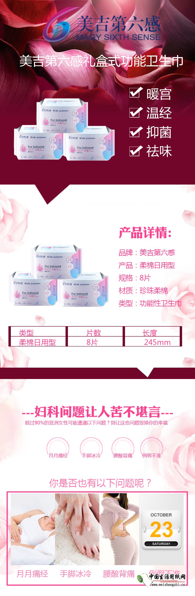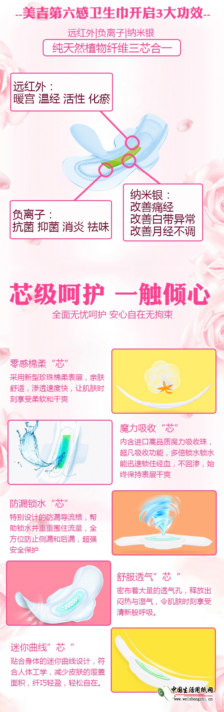 【暖宮·溫經·抑菌·祛味】 ——美吉第6感衛生巾全國招商