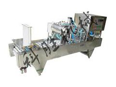 適用于各種酸奶、牛奶、豆奶、果汁飲料、調料、果醬等產品的生產,具有自動落杯、灌裝、消菌、光電跟蹤、封口(蓋)、自動對芯剪切、廢膜回收等功能。整機自動化程度高,封口強度好,結構合理,生產效率高,適用于各種進口、國產的鋁塑、PP、PE、CPP等復合卷筒包裝封口材料。