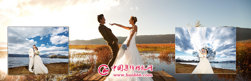 第二天:專業(yè)化妝師為您精心化上漂亮的新娘妝,前往麗江拉市海國際濕地公園--海上花園(野鴨.鶴.大雁讓這里成為世界最具活力的觀鳥天堂)??梢择Y馬飛揚在草原,也可以乘一葉小舟靜靜的體會高原湖泊雪山融為一體的神奇,體驗茶馬古道遺風,在湖邊依偎而坐,心戀“牽手朝朝--依偎暮暮”。讓思緒任微風飄灑。在拉市海舉行舉行隆重的婚慶典禮!遠觀東方的阿爾卑斯山--玉龍雪山,讓雪山神見證我們永恒的愛情!許下忠于我們一生的婚姻誓言:“你若不離不棄,我必生死相依”!,知心愛人在這里他向全世界宣告浪漫的愛情宣言,獨具特色的集體婚禮儀式后,相愛的伴侶一路歡聲笑語穿越過城市的喧囂在這方凈土拍攝屬于你們的精美婚紗照!晚上集體婚禮組委會將為新郎新娘們舉行浪漫的燭光晚宴 !!