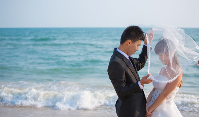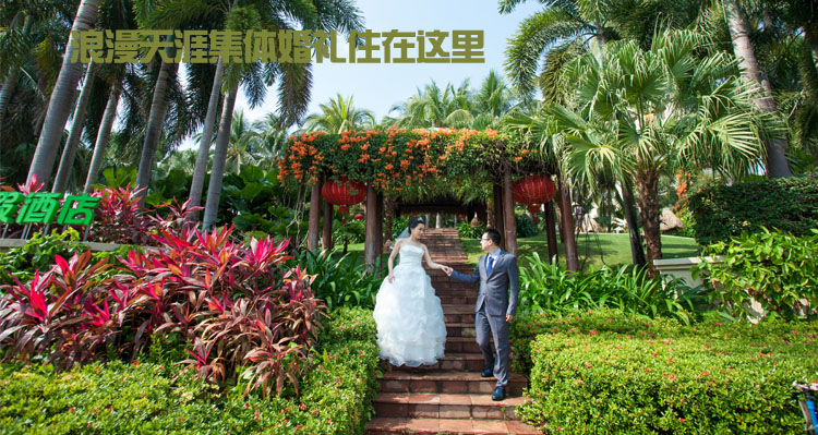 海南三亞,遠離世俗悠然詩意的島嶼,海風是你溫柔的梳子,椰林是你飄逸的秀發,礁石是你的發髻,而隨處盛開的三角梅則是你發髻上的頭飾。穿上那潔白的婚紗,享受浪漫、豪華、高端、新穎的集體婚禮+蜜月旅行,盡在中國集體婚禮網。限時贈送升級版高檔婚紗,僅此一屆錯過沒有哦!