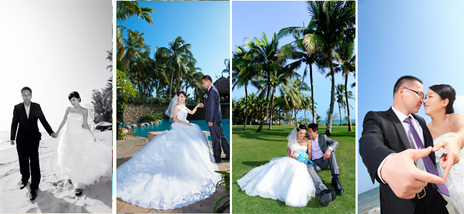 DAY 2:早晨,新人們懷著喜悅的心情,一起來無限享用西式美味早餐,再由專業的攝影/化妝團隊為新人們服務,先化上一個美麗新娘彩妝,穿上漂亮的白紗,在美麗的三亞椰林旁,綠色的草坪上舉辦中西合璧式草坪婚禮。清澈的藍天下,美麗的新娘和自己的心愛的他向全世界宣告浪漫的愛情宣言,獨具特色的集體婚禮儀式后,相愛的伴侶一路歡聲笑語穿越過熱帶園林,茂密的椰樹林中拍攝只屬于你們的浪漫婚紗照!晚上集體婚禮組委會將為新郎新娘們舉行浪漫的燭光婚禮 !!