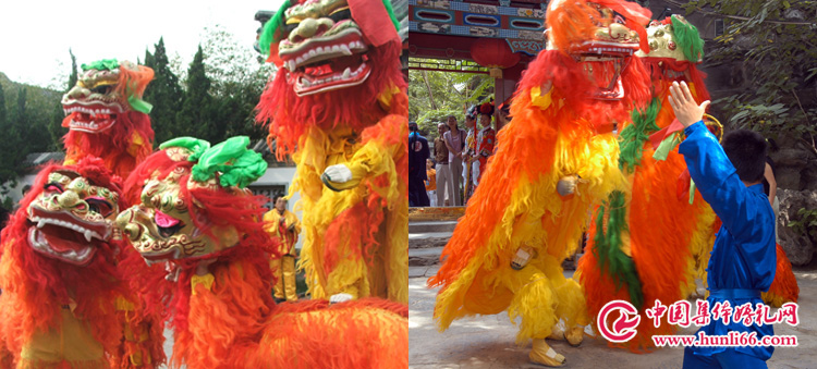 帶,由專業中式化妝師給您完美造型,新娘子們親手為新郎官佩戴大紅繡球,新郎官們親手給新娘蓋上紅蓋頭,看!祥獸