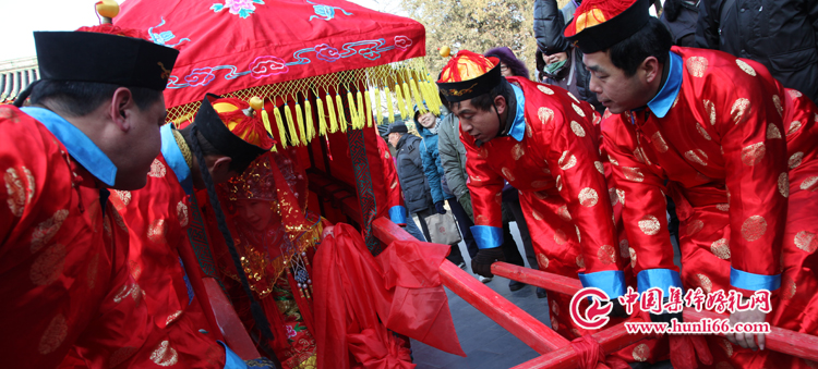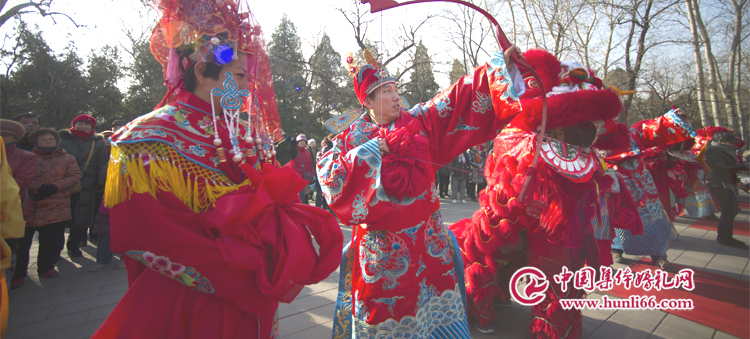 三箭定乾坤,牽繡球,過火盆,邁馬鞍,拜天地,挑蓋頭,合巹酒,點紅燭------加上老北京中式婚禮的經典吆喝,成為