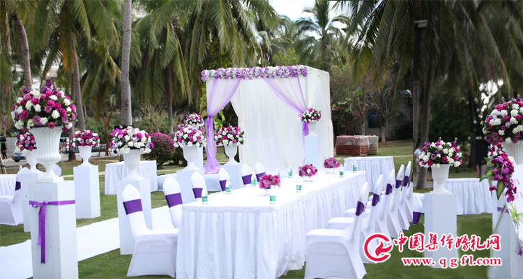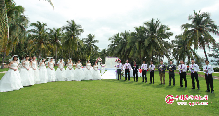 主持人宣布儀式開(kāi)始。在椰林旁,綠色的草坪上一對(duì)對(duì)新人走過(guò)愛(ài)情的灑滿鮮花瓣的通道,清澈的藍(lán)天下,洋溢著幸福、美麗的新娘和自己的心愛(ài)的他向全世界宣告浪漫的愛(ài)情宣言,新的家庭誕生了,百年好合,一生幸福。