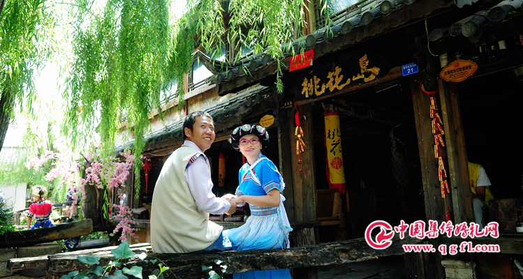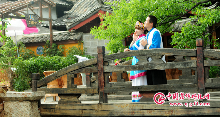 麗江、一幅古樸,典雅,幽靜的畫面。納西風格的民居鱗次櫛比,清清的溪流穿城過巷,一座座小橋如彩虹橫 跨小溪,排排垂柳在清風中搖弋,東巴為你們祈福,玉龍雪山為你們作證,浪漫的季節,愉快的心情,您和相愛的人攜手走進婚姻的殿堂,幸福的生活將從這里揚帆遠航。