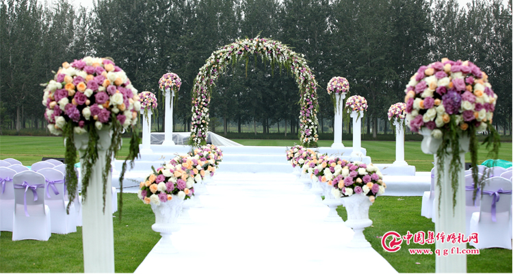 玫瑰莊園草坪集體婚禮 草坪為背景,鮮花為布景