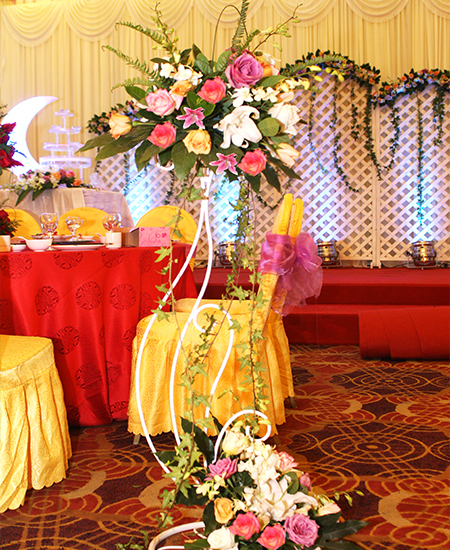 背景證婚亭、路引通道、香檳塔布景、花瓣雨。 | |