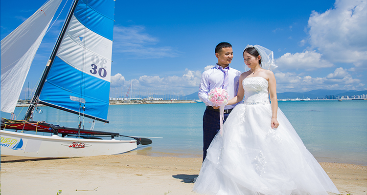 新郎新娘:準備結婚的新人,選擇到三亞舉辦隆重的結婚儀式,享受浪漫天涯婚禮的蜜月的浪漫旅行