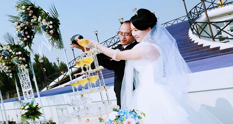 二位新人來到香檳塔前,這里有一座愛情的香檳塔,我們一起來見證這美麗的時刻,請二位新人共注這愛情的香檳。讓我們一起共祝二位新人,祝愿他們在天愿作比翼鳥,在地愿為連理枝,恩愛永久,相愛永久,相伴到永久。(干杯)幸福的時刻,伴隨著震撼的音樂,讓我們所有朋友用掌聲歡呼聲,陶醉在這幸福的大家庭里。