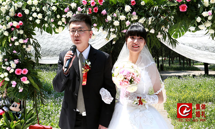 相約北京。來吧!國家的節日和集體婚禮的節日一起舉辦,意義深遠,天降幸福。10對新人是幸福的。一個聲音宣告:我們今天結婚了!參加吧,10對美麗的新人!