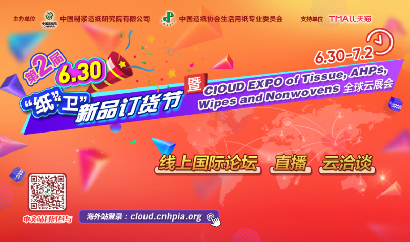 2021年6月30日,恰逢“生活用紙和衛(wèi)生用品云服務”平臺成立1周年之際,為期3天(2021年6月30日-7月2日)的第二屆6.30“紙”“衛(wèi)”新品訂貨節(jié)暨CLOUD EXPO of Tissue,AHPs,Wipes and Nonwovens 全球云展會即將拉開帷幕!此次活動分為中文站的第二屆6.30新品訂貨節(jié)和海外站的首屆CLOUD EXPO全球云展會,包括線上國際論壇、新品直播、云洽談等多種形式的活動,為打破疫情阻隔,實現國內、國外市場聯動,搭建起良好的商貿洽談平臺。此次活動預計吸引10萬+全球業(yè)內人士云端洽談。