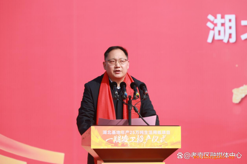 區委常委、區委辦公室主任闞巍發表熱情洋溢的講話,他代表區委、區政府向項目的順利投產致以最熱烈的祝賀:“金博士項目一期的竣工投產,是政企同心、攜手奮進的生動實踐,更是為決勝 2024 年、開啟 2025 年呈上的一份厚禮,其必將成為推動主城崛起的強大助推器。金博士作為扎根孝南、位列生活用紙‘全國十強’的第 6 家企業,此次投資的高端生活用紙一期項目,從 2023 年 7 月簽約、11 月火速開工,到今日榮耀投產,締造了令人矚目的‘金博士速度’。尤為值得一提的是,項目匠心獨運打造了華中地區首座生活用紙博物館,開創性地構建起‘研發 + 生產 + 銷售 + 文化’四位一體的全新產業模式。項目全面達產后,年產能將飆升至 25 萬噸,產值高達 25 億元,稅收貢獻達 2 億元,一舉躋身全市生活用紙生產規模前三甲,勢必進一步壯大賽南紙衛品產業集群,讓‘中國紙衛品之都’的招牌愈發熠熠生輝。區委、區政府將一如既往地把民營企業與民營企業家視為親人摯友,全心全意當好‘有呼必應、無事不擾’的金牌‘店小二’,攜手并肩邁向‘互惠互利、合作共贏’的康莊大道。”
