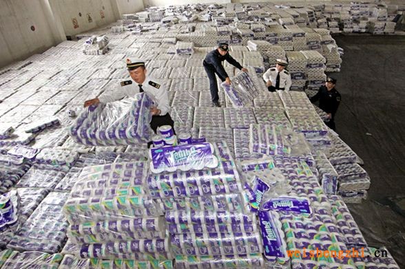 核心提示:近日,廣州海關下屬佛山海關駐高明辦事處查獲一批出口侵權衛生紙,重達40余噸。