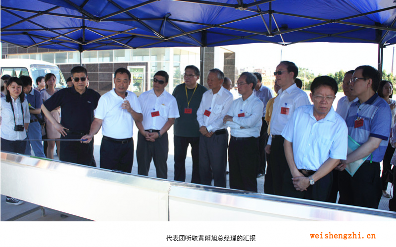在東海島特種紙產業基地現場,冠豪高新副董事長、總經理黃陽旭熱情接待了代表團一行。黃總向代表團詳細介紹了特種紙產業基地的建設情況及未來的戰略發展規劃,并就公司無碳復寫紙、熱敏紙、不干膠標簽材料三大主營特種紙產品的生產、銷售等情況進行了匯報。黃總同時指出,公司抓住廣東省“三舊”改造政策的有利時機,憑借自身在造紙產業的優勢及東海島的良好區位優勢,致力于在東海島打造世界級的