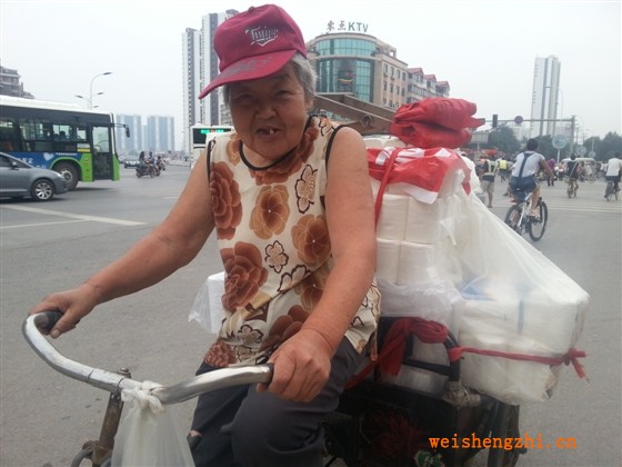 在陽光南大街與百花路交叉口東北側,每天下午都會有這樣一位白發蒼蒼的老人,推著一輛擺三輪車販售衛生紙。