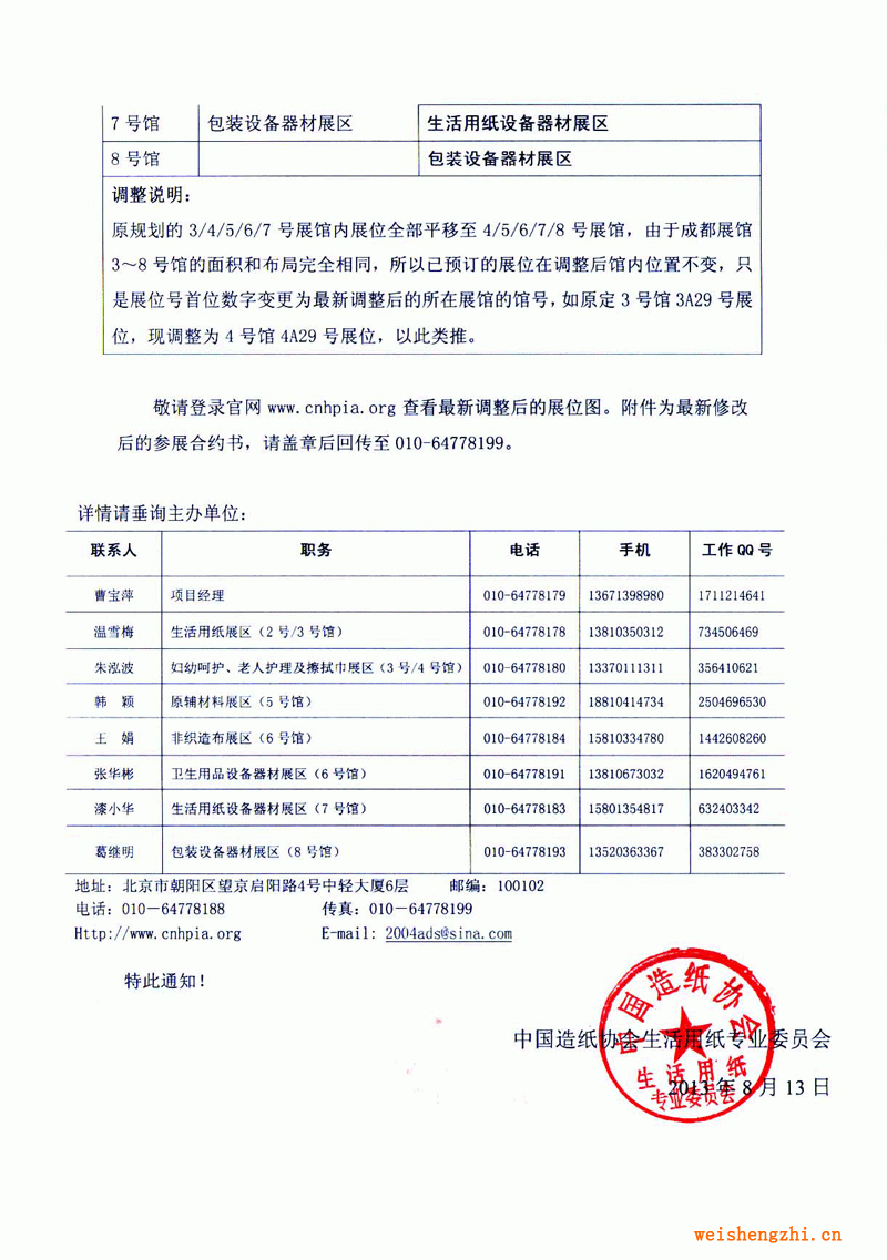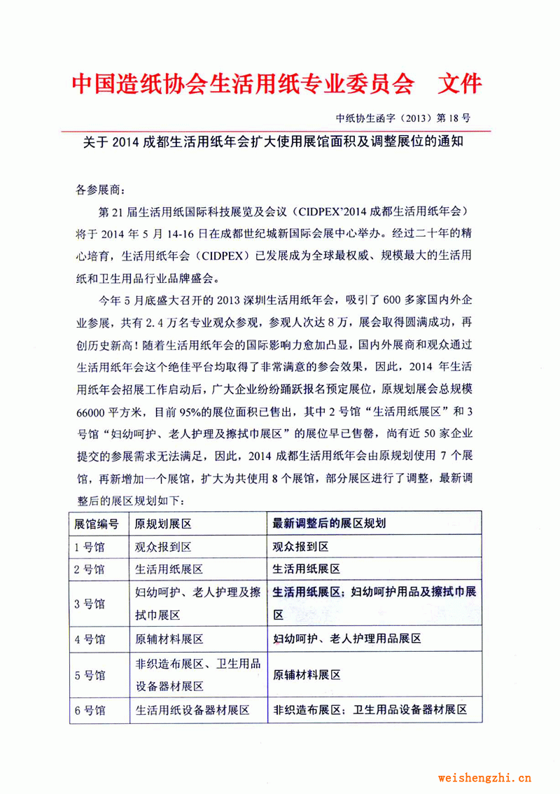 2014成都生活用紙年會擴大使用展館面積及調整展位的通知