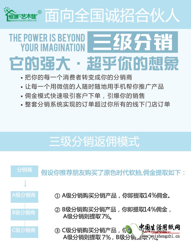 打造三級分銷需要一定的網絡技術及開發能力,中國生活用紙網(www.1-jia.com.cn)在這方面有強大的開發能力和豐富的市場經驗,我們開發的微信三級分銷商城系統、多級直銷系統、微信全民拼團系統、微信積分商城系統、微信砍價系統等功能十分強大完善,已為多家客戶提供開發和培訓指導服務。您想感受一下微信三級營銷的強大魅力嗎,請掃描下方二維碼關注體驗。
