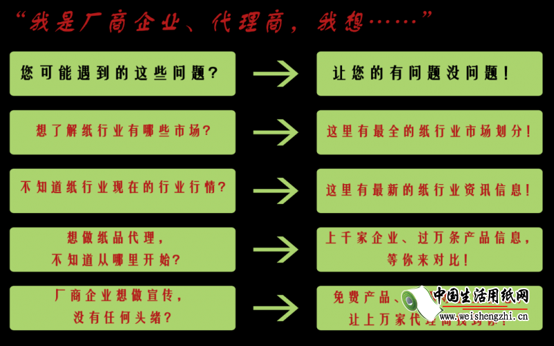 中國(guó)生活用紙網(wǎng)——遛紙APP平臺(tái),是您隨時(shí)隨地掌握新招商資訊、查閱供求信息、把握市場(chǎng)脈搏的掌上平臺(tái)。中國(guó)生活用紙網(wǎng),天天都是生活用紙展!更多精彩增值服務(wù),盡在登錄“遛紙APP”、“中國(guó)生活用紙網(wǎng)”!!!