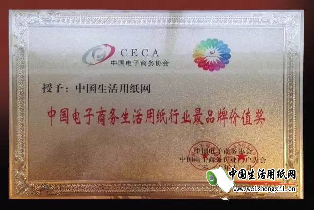 作為國內電子商務行業門戶的高峰會,中國電子商務行業門戶大會一直備受矚目,其中頒獎典禮是峰會中的一大亮點。各獎項的評選活動以創新力、影響力、貢獻力、公信力等方面為評價標準,通過推薦參評、網上投票、專家評審、媒體公示等環節進行評選。經過歷經數月的嚴格審議,中國生活用紙網被授予“中國電子商務生活用紙行業具品牌價值獎”獎項。