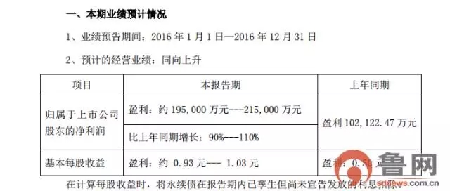 1月10日,記者獲悉,晨鳴紙業(yè)發(fā)盈喜,預(yù)料截至2016年12月31日止年度歸屬於上市公司股東的凈利潤為19.5-21.5億元人民幣,較2015年同期增長90%至1.1倍。