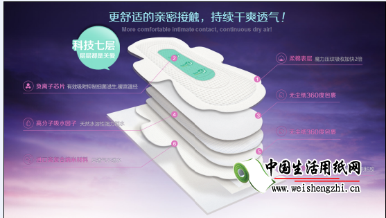 負離子衛生巾:首創雙芯技術,將活氧與負離子有機結合,能有效提高體內含氧量,在抑制有害細菌滋生的同時保護有益菌,可以有效保持女性生理的自潔能力;純物理效應、不含任何藥物或化學成份,無副作用;讓女性持續擁有健康、舒適、清潔的生理環境。