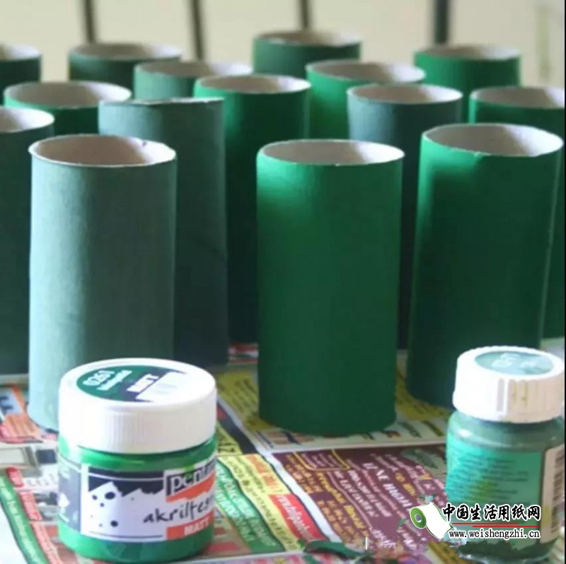 將卷紙芯重新涂顏色后,粘在一塊木板或者紙片上加固,就可以做成一個簡便式筆筒,辦公用筆什么的都可以放。