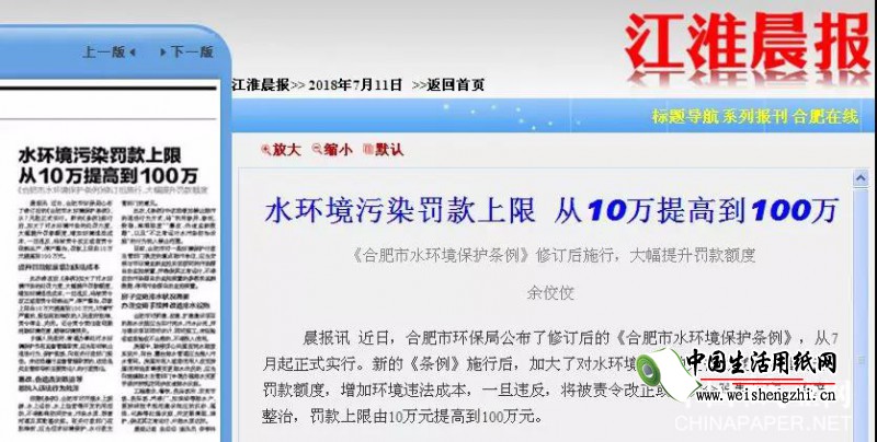 環(huán)保問題是近幾年抓的比較緊的問題,綠水青山就是金山銀山。為了解決污染問題各省的政策層出不窮,近日,安徽合肥市環(huán)保局公布了修訂后的《合肥市水環(huán)境保護條例》,從7月起正式實行。新的《條例》施行后,加大了對水環(huán)境污染的處罰力度,大幅提升罰款額度,增加環(huán)境違法成本,一旦違反,將被責令改正或者責令限制生產(chǎn)、停產(chǎn)整治,罰款上限由10萬元提高到100萬元。