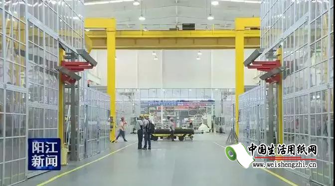 據項目相關負責人介紹,目前整個首期項目原紙生產即將進入第二階段的調試。現場可以看到,生產車間的二臺造紙機安裝了玻璃罩,既隔音,又防塵防霧,是全球第一家應用該設施的生活用紙工廠。整個工廠從原紙生產、后加工到倉儲,全流程實現自動化生產和輸送。