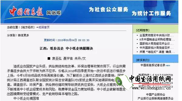 龍頭紙企高價壟斷,中小紙企市場競爭力弱,小廠家“一紙難求”。由于廢紙價格上漲,部分造紙企業(yè)資金緊缺,收購不到廢紙,無法正常生產而被迫開啟自殺式關停的現(xiàn)象頻發(fā)。這是國家統(tǒng)計局調查隊在江西省調查了當?shù)囟嗉壹垙S后得到的結論,這又何嘗不是當前全國中小紙廠生存現(xiàn)狀的真實寫照?