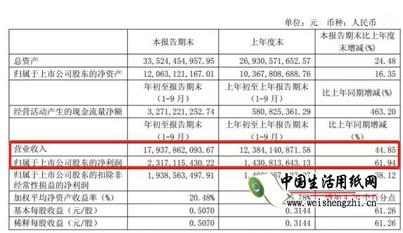 山鷹紙業(yè)前三季度營收179.38億元,凈利潤23.17億元