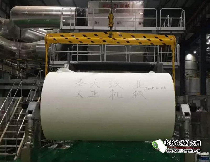 11月25日,廣西壯族自治區南寧市圣大紙業有限公司二期項目第一臺衛生紙機開機投產。該紙機是由山東大正機械提供的新月型衛生紙機,幅寬2,850mm,設計車速1,200m/min。