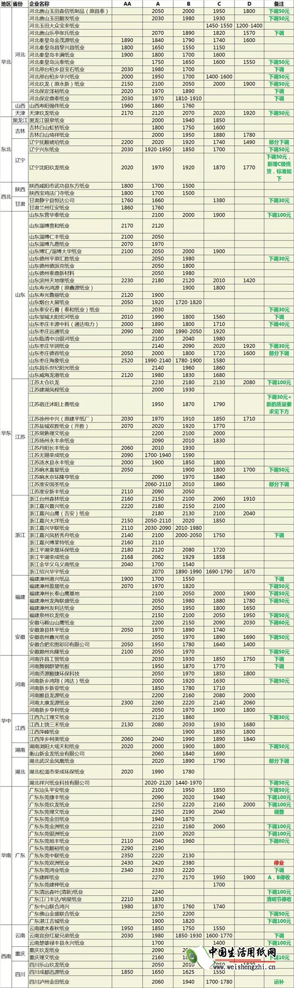 國廢價格落到如今的局面,說到底,主要原因還是原紙市場需求低迷所致。自3月份以來,紙價不斷下降,即便是龍頭紙廠玖龍紙業也在近一個月內連降三次,原紙市場萎靡不振,廢紙需求量自然減少。
