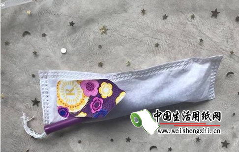 撕開衛生棉條的白色包裝袋,注意在拆開時要輕輕將貼條揭開,盡量不要破壞外包裝,可以把用過的衛生棉條放入包裝袋內,這樣就能避免垃圾桶被經血污染。