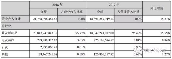 4月16日,太陽紙業披露2018年年度報告:實現營收217.68億,同比增長15.21%;實現歸屬于母公司所有者的凈利潤22.38億,同比增長10.54%。
